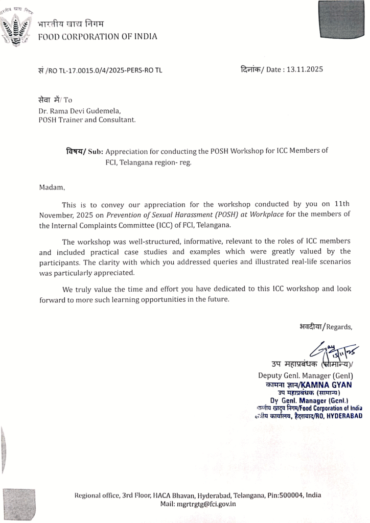 Delivering professional POSH and POCSO compliance trainings and consultancy. Solutions for safer, compliant workplaces and child spaces.